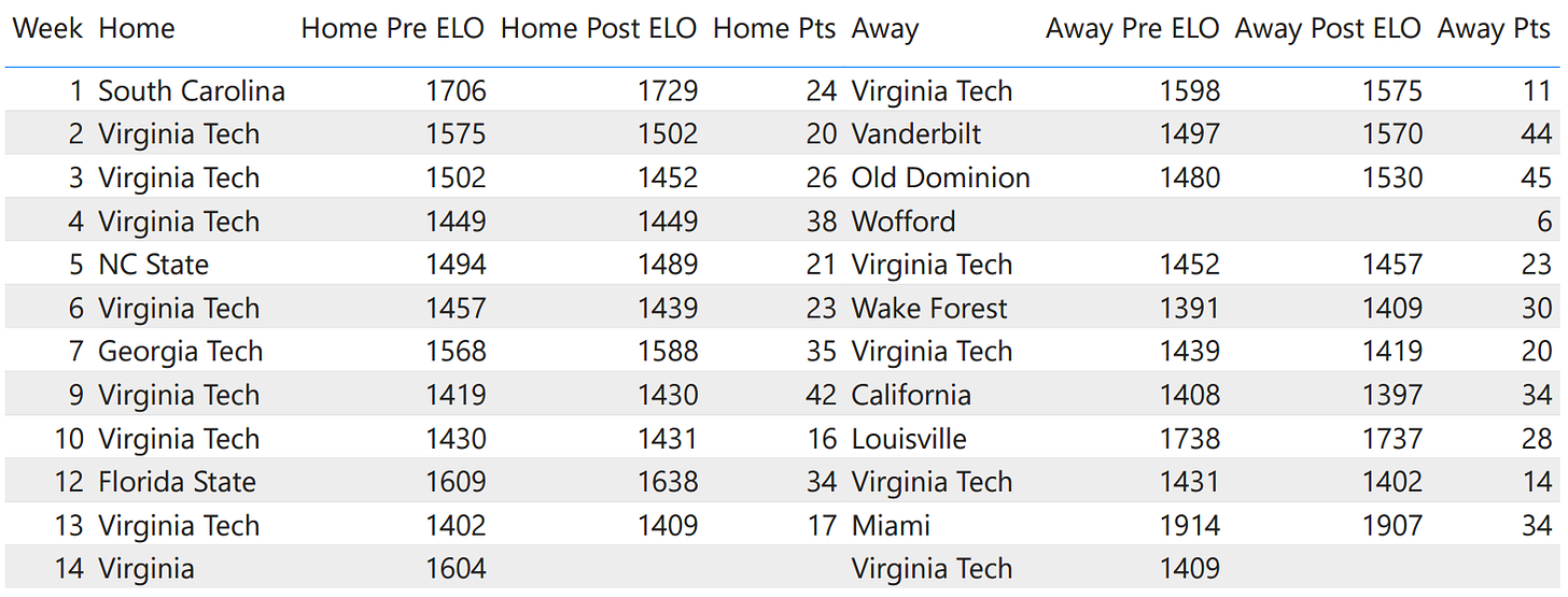 And that could be decisive, because in ELO terms, the Hokies (1409 ELO) look more like a marginal 5-7 team than one about to finish 3-9, while UVA (1604 ELO) is closer to 7-5 than 10-2.
