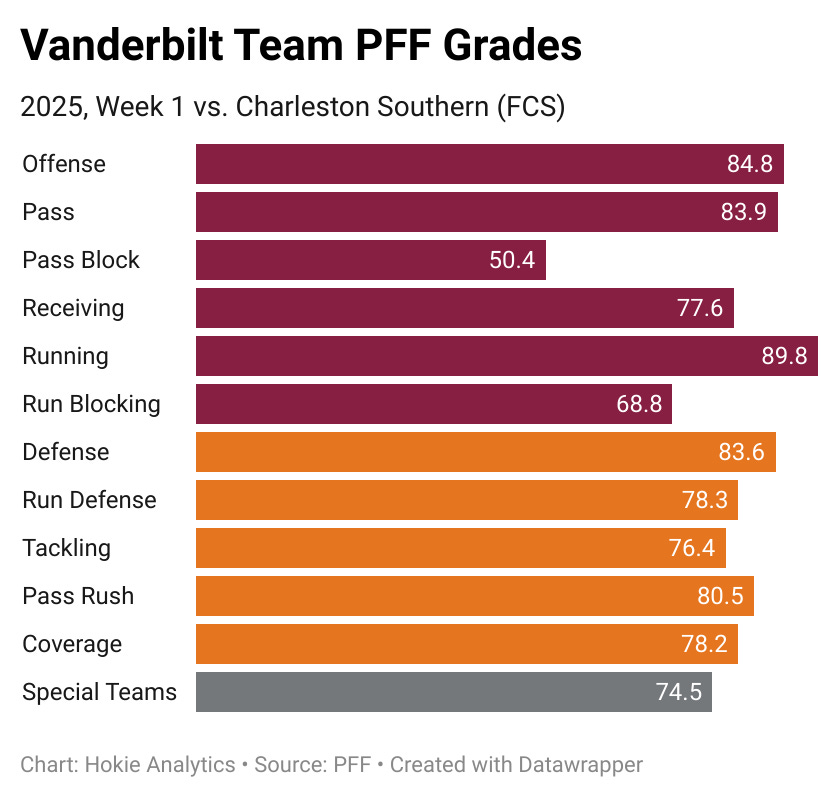 Fast forward a year, and after one game against a terrible FCS team, I expected to find a bunch of gaudy PFF ratings for Vanderbilt.